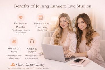 If you’re interested in becoming a creator with Lumiere Live Studios, simply submit your details below and a member of our team will be in touch. We provide full onboarding guidance, realistic earning potential and 24/7 support to help you get started with confidence. for you.